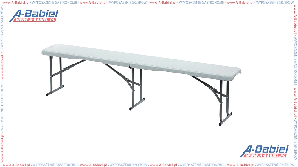 Stabilna ławka składana z wytrzymałą powierzchnią z tworzywa sztucznego jest błyskawicznie gotowa do użycia, a dzięki lekkiej i kompaktowej konstrukcji ma uniwersalne zastosowanie.